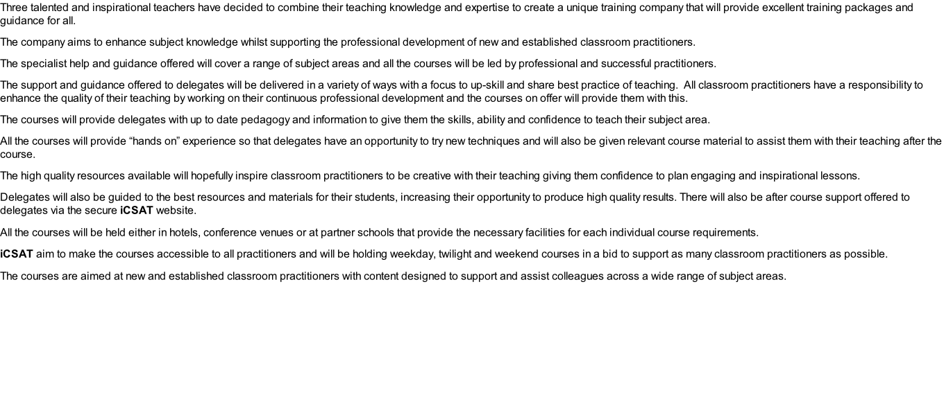 ICSAT Home CPD in a Box Make a Booking Support Moodle Visit our eShop What we do About ICSAT Contact us The Team About us